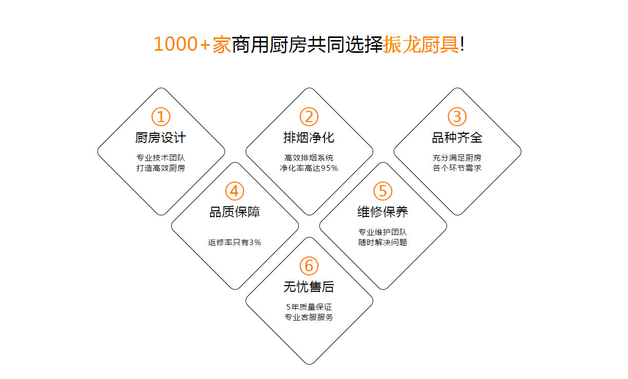 1.振龍廚具擁有大型的現代化工廠,精良的生產設備,所有廚具均達到國家環保。節能認證、廚具品質五星;